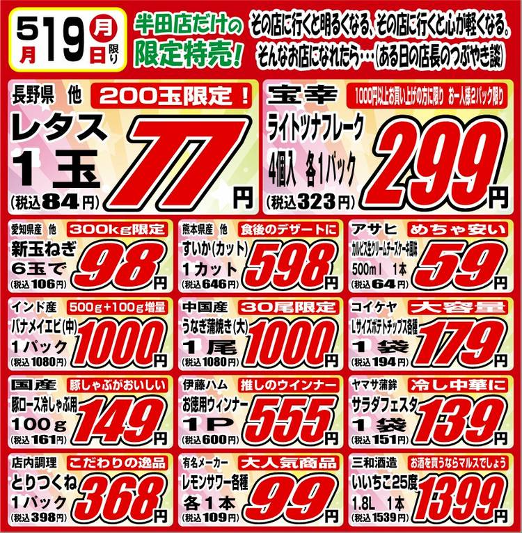 8/18(月)~8/21(木)✨ 半田乙川店限定の超お買得品のご紹介❗❗ マルスはいつでもお馬鹿な価格と商品でお客様をお出迎え中‼ 本日もいろいろな商品取り揃えております! ぜひマルス半田乙川店へGOGO‼ また6月10日(火)より半田市でスタートした半田市プレミアムデジタル商品券を 当店で使うこともできますのでぜひご活用してくださいね❗️ ✨※緊急告知 今週土曜(8/23)アルトバイエルン...