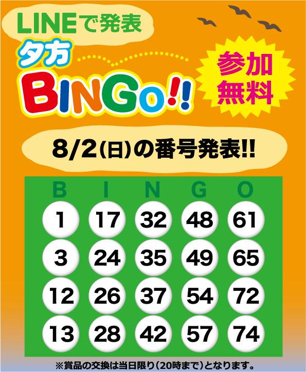 ビンゴで「店内のお好きな景品」shiny ハズレても「景品ゲーム100円分サービス」haha 交換は本日の20時までとなります! ご来店お待ちしておりますdash ※景品は装飾品等、一部対象外があります。