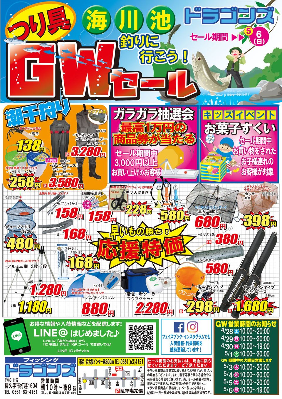 愛知県に店舗を持つ、釣具専門店「フィッシングドラゴンズ」です。中部地区の鮎釣り、伊勢湾・北陸の船釣りはお任せ下さい。またスタッフがその時々にベストなタックル選びをご提案させていただきます。 「楽しい釣り 美味しい釣り 応援します。」をモットーにスタッフ一同、お客様のご来店をお待ちしております。