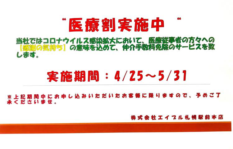 はじめまして! 当店は北の大都市札幌の中心にございます。 ☆当店の特徴☆ ①札幌市内全域の豊富な賃貸物件をお探し頂けます! ②賃貸マンション・アパート・戸建はもちろん、テナント・事務所・売買の情報(提携業者紹介)もご提供できます! ③JR札幌駅南口側の駅前に立地のため道内のお客様はもちろん道外から新千歳空港経由のお客様も快速エアポートで札幌駅へ一本でご来店頂けます! ④当店はターミナル駅立地のため転勤や異動など広範囲のエリアでお探しされる方は一店舗で幅広くお探し出来ます! ⑤女性スタッフも多くおりますので女性お一人でも安心してお部屋探し頂けます! ⑥転勤・就職・入学で初めて札幌に来られる方も各地域のスペシャリストが札幌住まいのアドバイスを致しますのでお任せ下さい! ⑦市内からお越しになるお客様は地下鉄南北線札幌駅の3番出口直結エレベーターで直接店内まで来られますので雪の多い日も安心してご来店頂けます! お部屋探しされる皆様の新生活のお手伝いをスタッフ全員一生懸命頑張ります。ご来店お待ちしております!