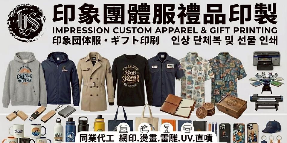 專業客製服飾.班服,企業服,團體服,贈禮品批發印製,燙畫,燙金,反光,夜光,UV印刷,雷射雕刻等..贈禮品批發客製。歡迎報價洽詢. 少量客製化.標準化報價.客製化服務,可量產可批發.