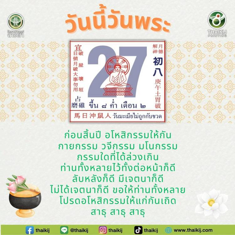 🙏✨ วันนี้วันพระ 🙏✨ 💛ขออโหสิกรรมบุพการี นับแต่นี้ขอให้ชีวิตข้าพเจ้าไม่มีตกต่ำ มีแต่ความเจริญรุ่งเรือง ร่ำรวยด้วยเทอญ..สาธุ . 📆 #ปฏิทินจีนไทยกิจ เรียบเรียงโดยสำนักโหราศาตร์ฉางฟาง (長發 Zhǎng fā) บอก...