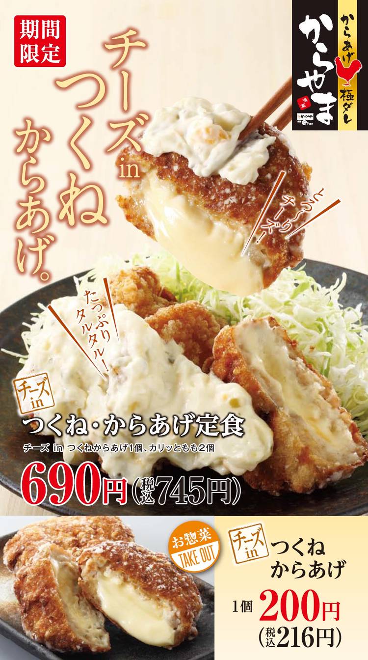 からあげ「からやま」とは… 日本人の好きなものランキングで常に上位にランクインする「からあげ」をお手頃価格でたっぷり召し上がり頂ける店舗です。最後まで美味しく召し上がって頂くために「からあげ縁」の「極ダレ」も用意しております。お持ち帰りコーナーも充実させ、複数種類のからあげを量り売り等で販売します。