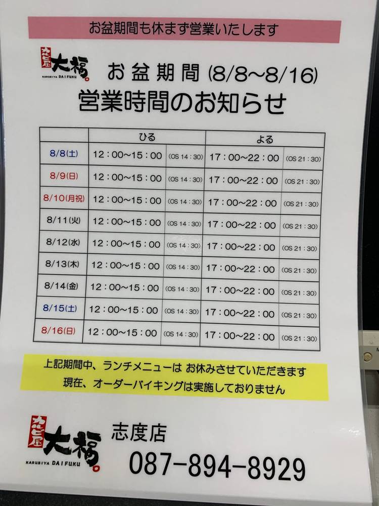 美味しい笑顔、楽しい会話、みんなに大きな福が来ますように。 大福のスープは・・・ 厳選素材を使って、さっぱりとした味の中に、コクと旨味を詰め込んだスープです。 大福のキムチは・・・ 癖のない食べやすさと、お口の中にいつまでも残らない、自然の辛さにこだわりました。 大福のお肉は・・・ 安全で安心できるお肉を使用しています。 和牛は店内に個体識別番号を表記し、美味しさはもちろん、安心して楽しいお食事ができる環境を心掛けています。