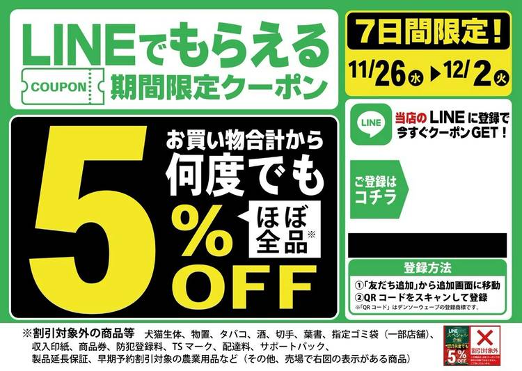 いつもありがとうございます(^^♪ 今日も元気に開店致しました☆彡 本日最終日‼ 『lineクーポンで5%offセール』開催中です! ぜひ、年末前のお買い得なこのご機会お見逃しなく‼ #アークランズ #ムサシ美原店 #ムサシ #lineクーポンセール 今週末は 『わんわんマルシェ開催です♪』ょ☆彡