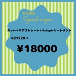 【平日限定】カット+ケアストレート+3stepトリートメント