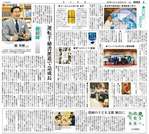 【毎日新聞「インタビュー最前線」に代表の橘が掲載されました】 毎日新聞(2019年9月2日号)「インタビュー最前線」に弊社代表橘のインタビュー記事が掲載されました。