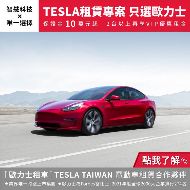 夏日感謝祭、歐力士貴賓禮遇 好禮四重送 好禮一:賀 歡慶【歐力士猛牛隊】創佳績 6月狂掃11連勝//暫居日本職棒太平洋聯盟首位 7-9月租TESLA選歐力士即可抽MODEL 3兜風短租券X10天!!! 市價$88,000 共3名 好禮2:<申辦一般方案>即享TESLA原廠精品2選1 好禮3:申辦<1062低保證金方案>,即獲Moshi經典配件三...