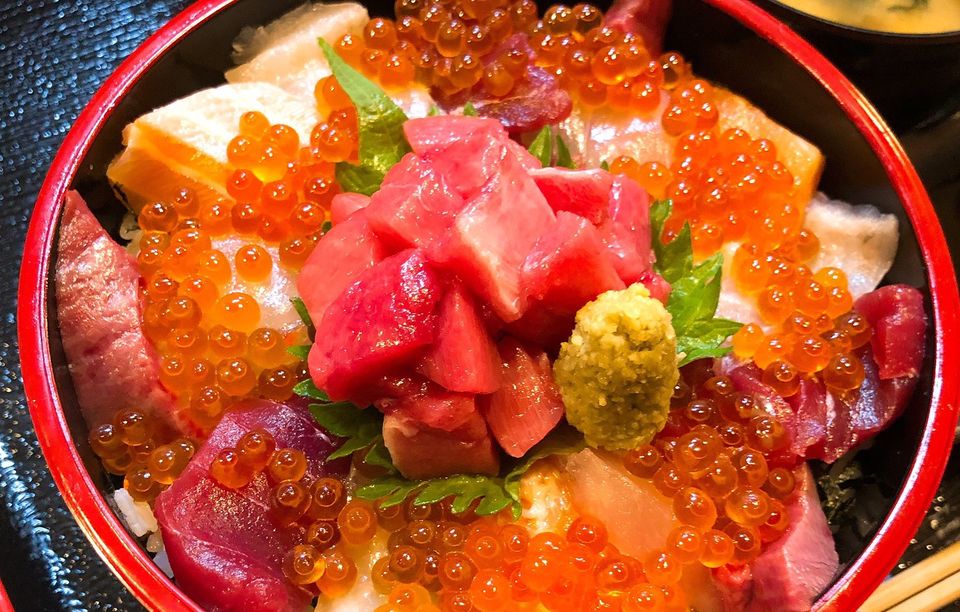 マグロといくらの丼。オススメです。