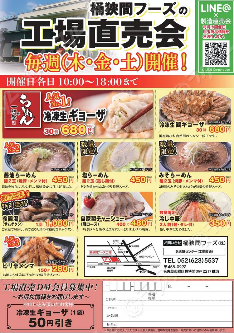≪2月の工場直売会のお知らせ≫ いつもご利用頂き、ありがとうございます 【開催日】 2/18(木)・19(金)・20(土)です 朝10時より夕方6時まで販売 LINE友だち限定クーポン 厚切りチャーシュー(端材)100円引き お1人様5袋までご利用頂けます 保冷袋なしで30円引き 680円⇒650円に1袋30円引で お買い求め頂けます ※レジ袋...