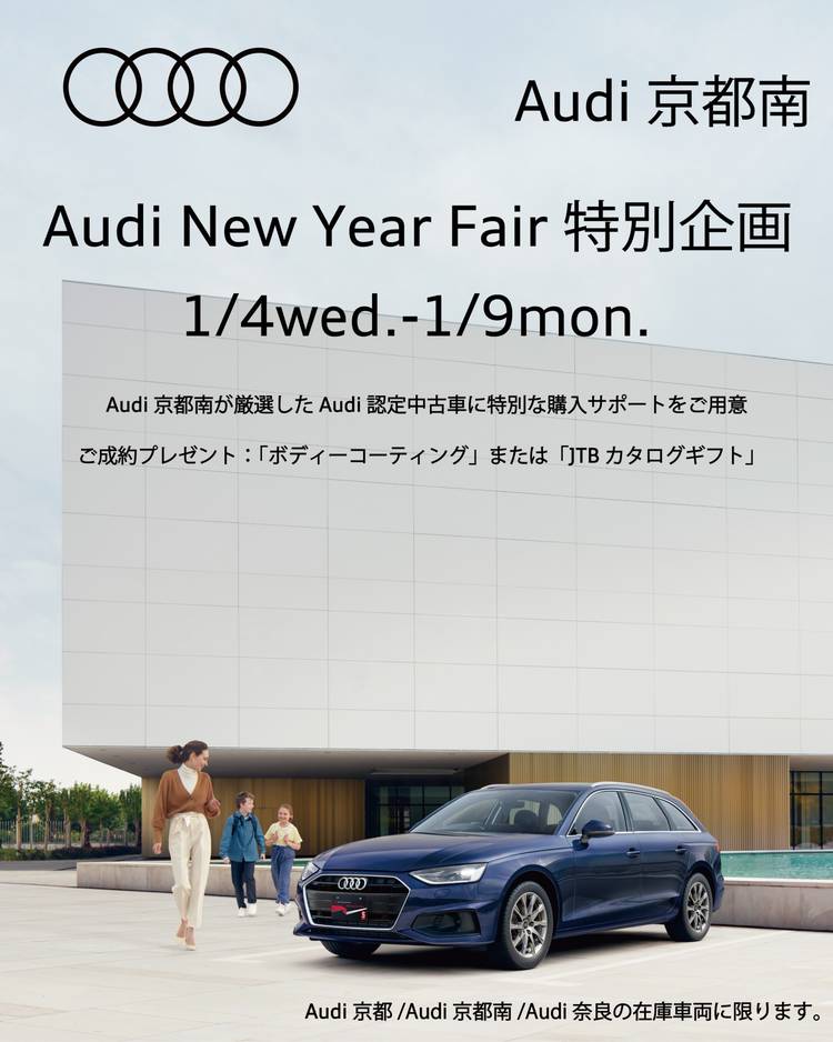 Audi京都南はモノトーン基調のスタイリッシュなショールームです。キッズコーナーも充実しておりお子様連れのお客様にもごゆっくりお車をご覧いただけます。また屋外には正規ディーラーならではのAAA認定中古車も常時展示しております。国道1号線の横大路という立地からは京都南部はもちろん大阪方面や京滋バイパスご利用で滋賀方面からもアクセスしやすい位置にございます。 お近くにお越しの際にはぜひお立ち寄り下さいませ。スタッフ一同、心よりお待ちしております。