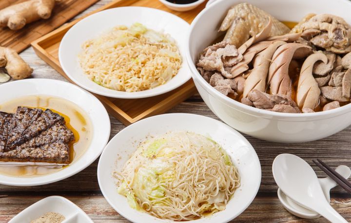 溫潤不燥、四季溫補 我們的麻油料理不會燥熱,因為使用大量薑母頭炆火翻炒了一小時,使其不燥熱、取之補虛溫中、逐風濕痺,薑在炎熱時節可排汗降溫、提神、紓解疲勞能促進食慾,麻油雞為四季合宜的養生食補,現場可添湯,雞腿很快售罄。