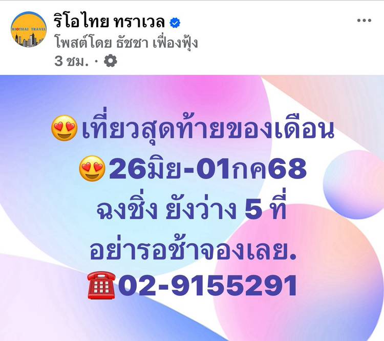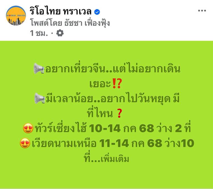 📍เปิดจองแล้ว #ทัวร์ปีใหม่ #เที่ยวจีน #ทัวร์ไม่ลงร้าน #รถไฟทะลุตึก บินตรงลงฉงชิ่ง อู่หลง อู่หลิงซาน ต้าจู๋ 6วัน5คืน /HU(ไห่หนานแอร์ไลน์) ✈27 ธันวาคม-1 มกราคม 2569 👉 28,900.- ...