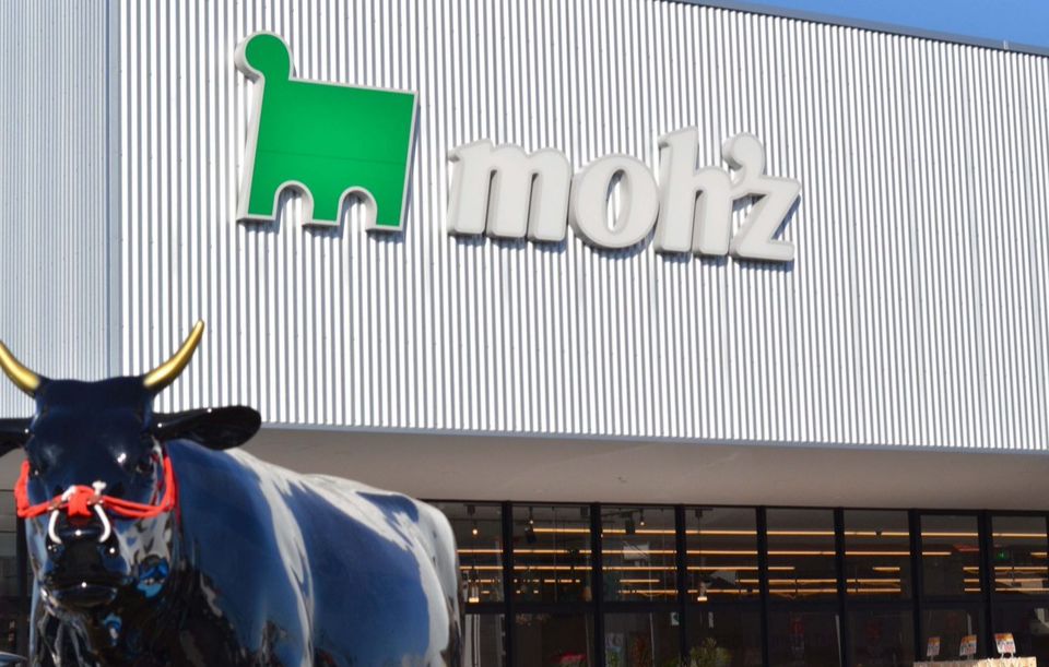 山形県内初 近年注目される小売×外食の融合業態「グローサラント」(グロサリー×レストラン) 「グローサラント」は、食料雑貨や日用品を意味する「grocery(グロッサリー)」と「restaurant(レストラン)」を組み合わせた造語で、「食品売り場にある食材を使った料理を楽しめるレストラン」のことです。moh’zではお肉を始め売り場で様々な食品を販売しており、そこで購入した商品を店内昼限定レストラン「m’z KITCHEN」で食べることができます。「m’z KITCHEN」ではランチメニューも用意されており、手軽な価格で美味しいお肉を食べることができます。営業時間外はイートインスペースとしてご利用いただけ、さらには毎週料理教室を開催します。 山形県内初 レジ袋を完全廃止(有料含む) 蔵王にある自社牧場で約3,000頭の牛を飼っている私どもは、自然環境への影響には人一倍関心があります。弊社は11年前という業界でも早い段階からレジ袋を有料化しており、その金額の全額を「山形市ゴミ原料もったいないファンド」に寄付し続けています。そして私どもは、この度のmoh’z開店においてはレジ袋を完全に廃止し、環境保護への意識をさらに高め、お客様と共に地球環境への配慮を共有していきたいと思います。また紙袋は9円/枚・ダンボールは無料でご提供し、オリジナルエコバックの販売を行います。 枝肉を吊るし週1回解体 見えるバックヤード 店内精肉売り場の壁面に大きなガラス面が2つあります。1つは冷蔵庫の中身が見えるものになっており、枝肉(分割する前の骨付きの肉)がぶら下がっているのを売り場から見られます。そしてもう1つのガラスからは作業場を見ることができ、そこでは定期的に枝肉の脱骨作業を行います。常に衛生と鮮度を保つバックヤードの様子や「枝肉」「脱骨作業」を楽しめる貴重な機会をご提供します