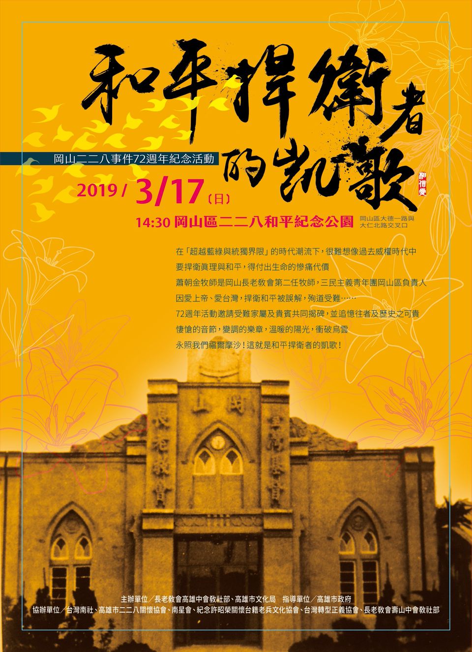 自2009年5月21日起由高雄市政府文化局委託「高雄市關懷台籍老兵文化協會」經營管理「戰爭與和平紀念公園主題館」。該處為國內唯一同時紀念台籍日本兵、台籍國軍、台籍共軍之館舍,並兼及日本高座少年工、看護婦、慰安婦、戰俘船等議題,並舉辦各項相關活動,主要任務有兩個:「找故事」和「說故事」,目的則是要讓更多人知道台灣兵的故事。嘗試用貼近生活和人性的角度,去紀錄訴說台灣兵的生命經歷,以藝術、文化、學術、展覽、活動等方法來呈現,說故事給大家聽。例如繪本、動畫、紀錄片、電影、故事營隊、文史工作,主題策展、志工培訓、網路平台、數位博物館、遊學導覽、鄉土教學、學術研討、人權營隊……。 讓故事去觸動人心,進一步思索生命……