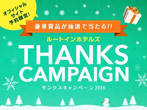 今年もオフィシャルサイト予約限定の2018サンクスキャンペーンがスタート 対象期間内にご予約&ご宿泊いただくと、選べる5つのコースから抽選で豪華賞品が当たります ◆予約対象期間 2017年12月21日(木)~2018年2月28日(水) ◆宿泊対象期間 2018年1月1日(月)~2018年2月28日(水) 詳しくは下記をチェック! https://www.route-inn.co....