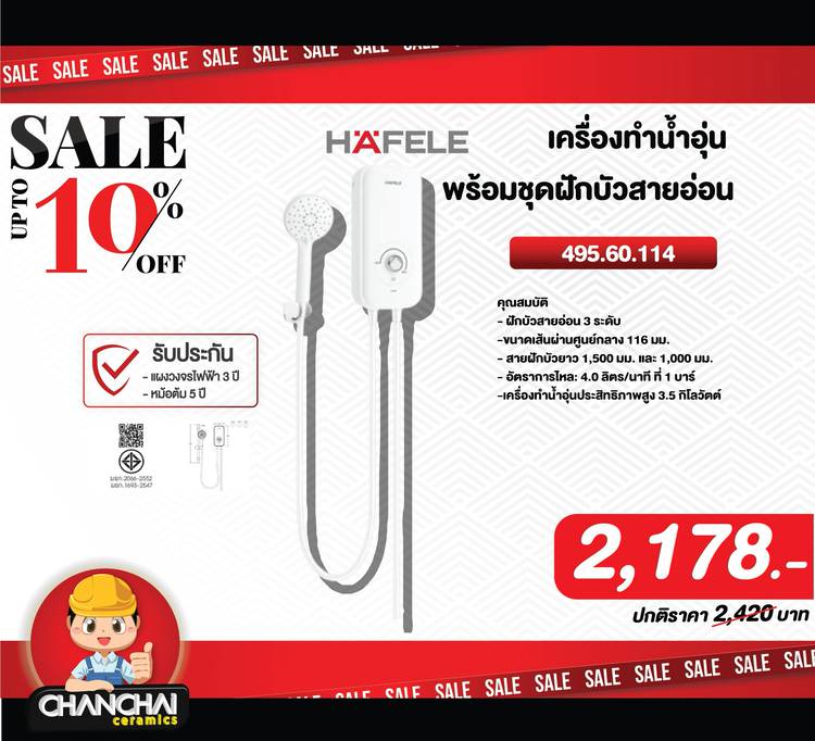 อาบอุ่นทันใจ ปลอดภัย ประหยัดไฟ! เครื่องทำน้ำอุ่น HAFELE คุณภาพยุโรป ราคาคุ้มค่า -น้ำอุ่นเร็วทันใจ -ระบบปลอดภัยได้มาตรฐาน -ดีไซน์สวย ทนทาน ประหยัดไฟ -มี มอก. 2066-2552 และ มอก.1693-2547 รับรอง -รับประ...