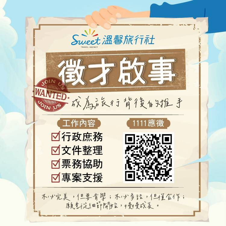 溫馨、快樂、開心是我們想要透過旅行傳遞給大家的! 秉持誠懇、認真、負責的服務精神,讓每一次旅行、每一次航班都順利的抵達到目的地!