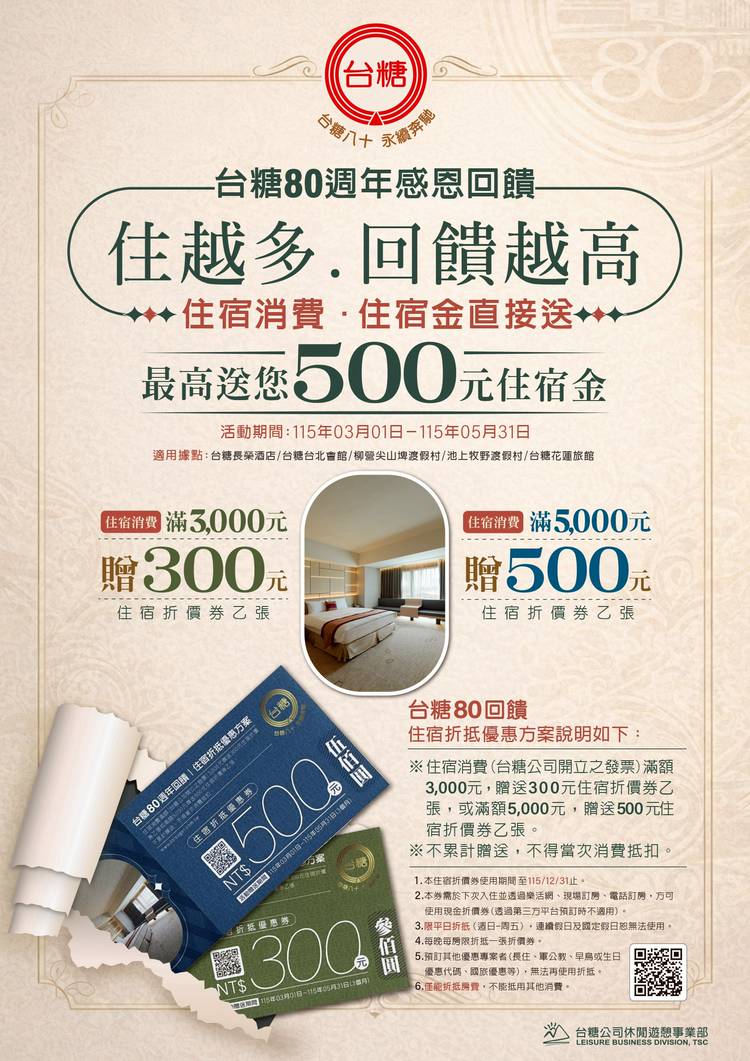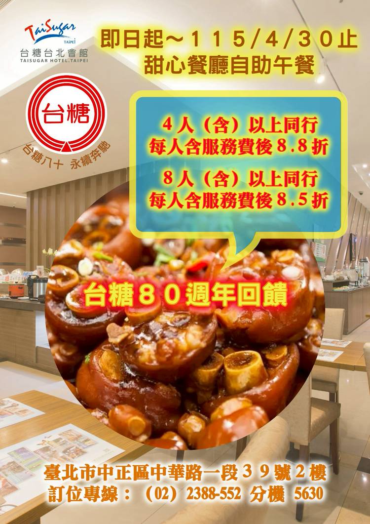 「台糖台北會館」以現代化亮麗的外觀,坐落於台北市中華路一段,緊鄰西門鬧區及台灣行政中樞博愛特區,鄰近台北市南來北往三鐵共構的台北車站,基地營業樓層為地上1~5樓,總房間數68間客房。 會館以台糖企業形象及旅館貼心的服務,讓「是生活也是享受,是旅館也是你家」的經營理念,真誠地讓每位入住的朋友感受幸福。