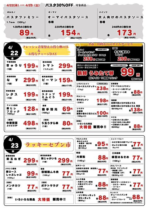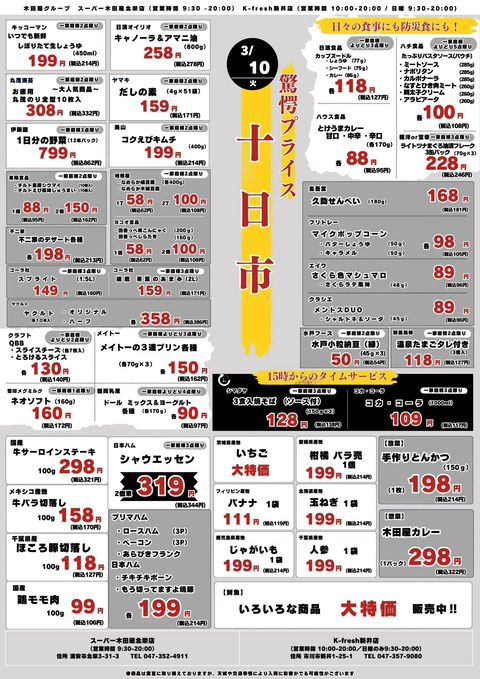 新鮮な野菜・精肉・鮮魚。豊富な食品。そして、250円弁当を中心としたお惣菜。 地域に根差し、お客様の食卓を第一に考えた売り場づくりを心掛けております。 贈答品やパーティーオードブルのご発注も随時承り中です。