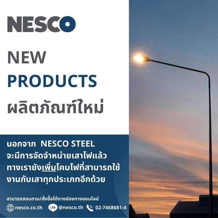 Nesco Steel (เนสโค่ สตีล) 🏛 ผู้ผลิต นำเข้า และแปรรูปเหล็ก แบบครบวงจร นอกจาก NESCO STEEL จะมีการจัดจำหน่ายเสาไฟแล้วทางเรายังเพิ่มโคมไฟที่สามารถใช้งานกับเสาทุกประเภทอีกด้วย เช่น 1. โคมไฟถนนมี - NC2 ข...