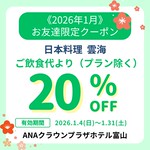 《2026年1月》日本料理 雲海 20%OFFクーポン