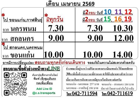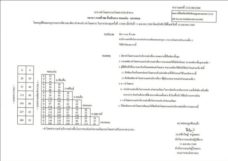 เดินทาง/ส่งพัสดุนครพนม-ขอนแก่น