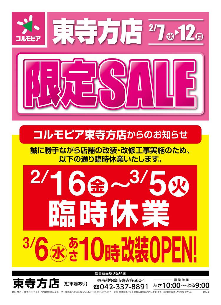 < 売り出し期間 > 3/13(水) ~ 3/17(日) 春の特価市開催