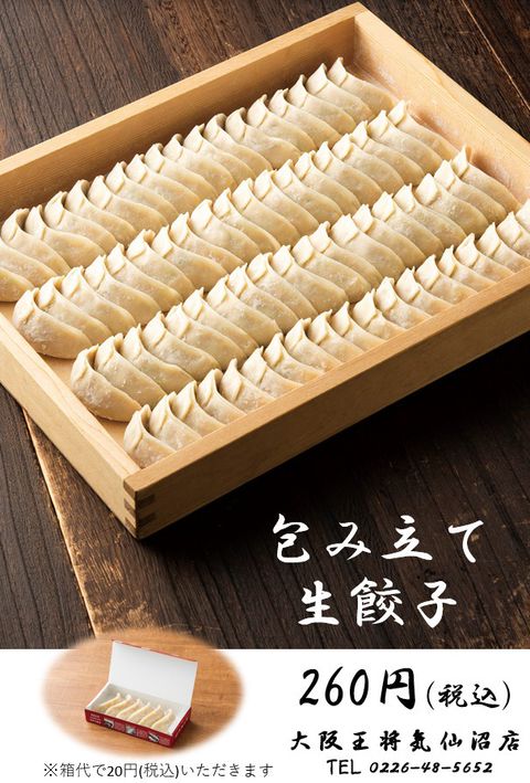 大阪王将の元祖焼餃子はお店で手巻き。 食感と風味豊かな味わいをご提供します。 〇餃子を速く包むのもおいしさの条件 職人が餃子を包むスピードは、速いほうが良いとされています。 最も速い人で2秒に1個(!)の餃子を包みます。 餃子を手に持っている時間が長いと手の熱が餃子に伝わってしまい、鮮度の低下につながります。 手に持っている時間を短くすることにより、餃子に手の熱が伝わりにくくなり、 鮮度がより保たれるのです。