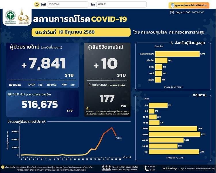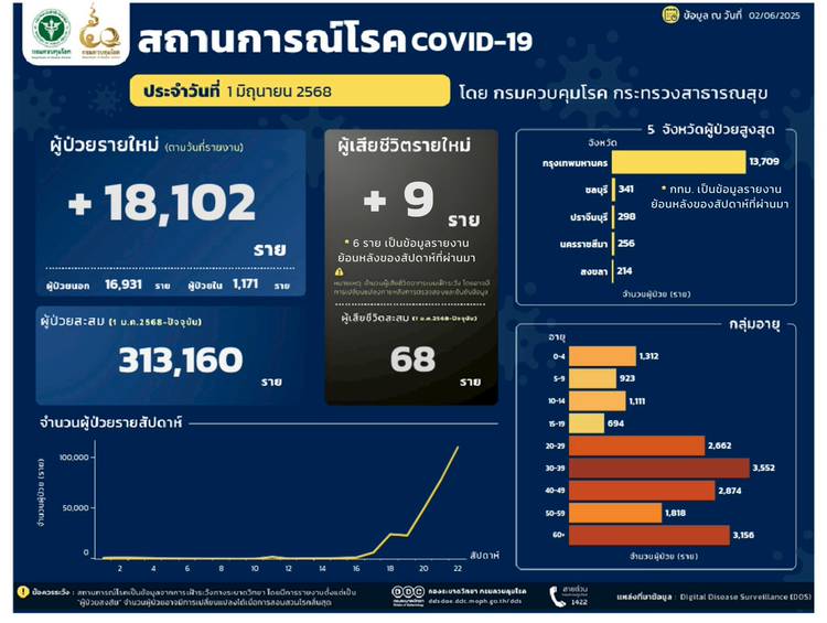 📈 สถานการณ์ผู้ติดเชื้อโควิด 19 ประจำวันที่ 2 กรกฎาคม 2568 🤧ผู้ป่วยรายใหม่ เพิ่ม 3,859 ราย 💀ผู้เสียชีวิต เพิ่ม 3 ราย --------------------- ผู้ป่วยสะสม 569,490 ราย (ตั้งแต่ 1 มกราคม 2568) เสียชีวิ...