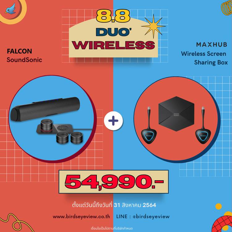 🔥 Duo Wireless คู่หูไร้สายใช้งานง่ายแค่นิ้วสัมผัส 👆 โปรโมชั่น 8.8 ที่สุดแสนจะราคาดีไม่ไหวเมื่อซื้อ Falcon SoundSonic คู่กับ Maxhub Wireless Screen Sharing Box พิเศษ❗ เหลือเพียง 54,990 บาทเท่านั้น ...