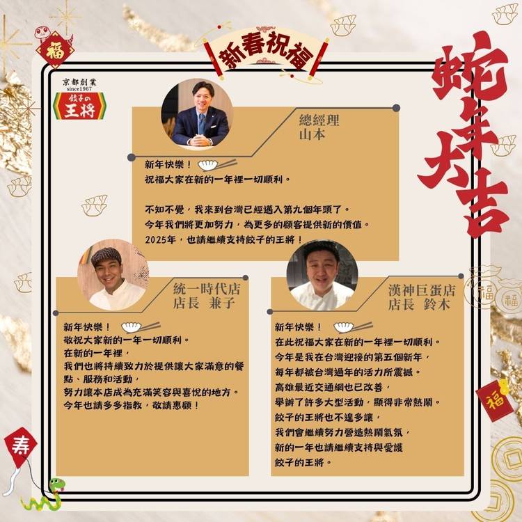 匠心料理為爸開桌,巨蛋店父親節套餐上市! 這裡是來自京都,創業於1967的 🥟餃子の王將🥟 今年父親節就用一桌熱騰騰的中華好菜,感謝爸爸的辛勞與守護。 活動期間:2025年7月10日-8月10日 🎉 父親節套餐,經典熱炒+期間限定料理一次滿足 🎁 滿 300 元送 50 元折價券,下次來更划算!! 漢神巨蛋店 🈺高雄市左營區博愛二路777號4樓(高雄漢神巨蛋) ☎️07-586...