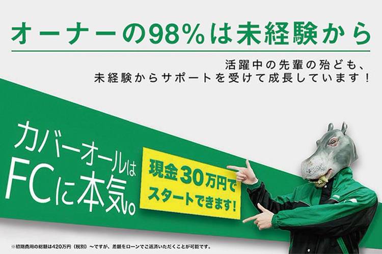 ★起業や独立、転職を検討されている方必見★ トーマスリビンググループの新事業 営業不要の清掃フランチャイズ 「リビングカバーオール」 フランチャイズ加盟、積極募集中!!! ■カバーオールとは? アメリカ発祥の清掃フランチャイズ事業。 日本では大阪を中心に25年の歴史があり、 がっちりマンデーでも紹介された今注目の事業!! 2019年6月より福岡でも事業を開始いたしました!! ■特徴 ・営...