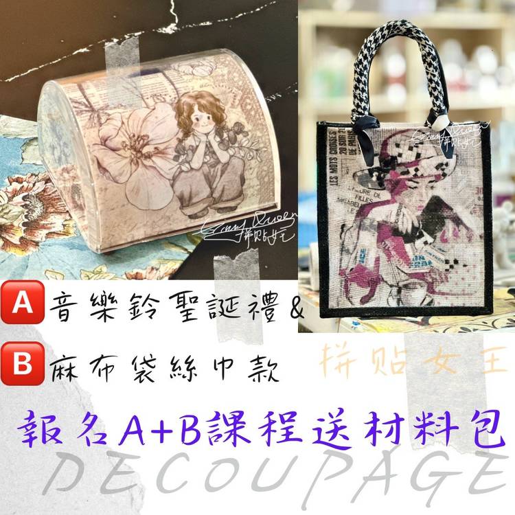 #蝶古巴特手作 #聖誕月單堂課 聖誕月敲碗的蝶古巴特課程,給喜歡美麗獨特的你!拼貼女王Ginny老師特別訂製文青時尚的飄帶巧手提以及北歐風格的小熊萬用書報盒,配合獨特的技法、獨特的手工棉紙、獨特的美圖,手作成獨特的精品,適合喜歡獨特有創意的你一起來體驗! A 立體花飄帶巧手提 (30*25*13cm) https://forms.gle/9ZqpELjA9edG7j4NA B 小熊萬用書報盒 ...