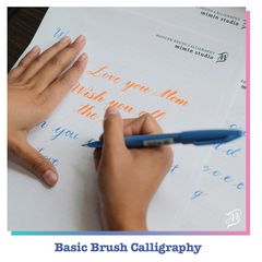เรียนรู้ Calligraphy ตั้งแต่เบสิกด้วยปากกาพู่กันหัวเล็ก (brush pen) เขียนอักษรให้วิจิตร เข้าใจตั้งแต่การจับปากกา จนเขียนเป็นคำได้ เน้นเบสิคแน่นๆ กลับบ้านกับผลงานใส่กรอบสวย คอร์สนี้ใช้ปากกา Pentel Touch เหมาะสำหรับเขียนอักษรขนาดสูงไม่เกิน 1 cm. พกพาปากกาไปใช้ง่ายในชีวิตประจำวัน ค่าเรียน MB: สอบถาม ใครอยากวาดรูปดอกไม้ล้อมกรอบอักษร ให้แจ้งสมัครคอร์ส Draw your dream garden จะได้เรียนทั้งเขียนอักษร และวาดรูปกรอบดอกไม้ (เพิ่มเงินค่าอุปกรณ์ 500 บาท)