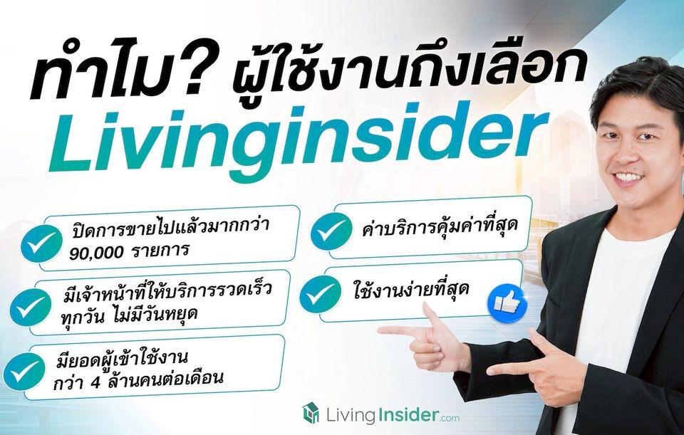 Livinginsider ถือเป็นแพลตฟอร์มตลาดอสังหาฯ ที่มีผู้เข้าใช้งานสูงเป็นอันดับต้นๆของเมืองไทย มากกว่าเดือนละ 4,000,000 คน หากท่านต้องการโอกาส ในการขายหรือให้เช่าอสังหาริมทรัพย์ของท่าน เราช่วยได้ให้ท่านได้มีโอกาสติดต่อจากลูกค้ามากขึ้น ต้องการสอบถามเพิ่มเติม Admin ยินดีให้บริการนะครับ แชทมาได้เลย