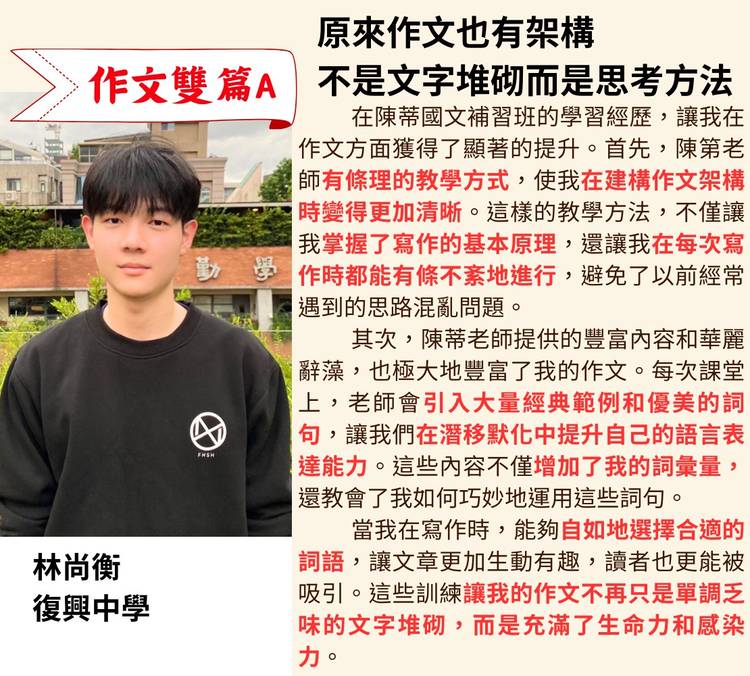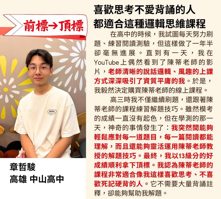 **雙北學霸早已改用理科邏輯秒殺考題,只有你還在靠『語感』賭運氣。** 別再說國文沒有範圍、只能靠運氣! 如果你還在逐字翻譯文言文,還在寫流水帳般的作文, 那不是你沒有天份,是你用錯了方法。 面對基北區最激烈的戰場,這兩位來自雙北的國中生, 為什麼能在最後關頭逆轉勝,穩穩拿下 **A++**? 因為他們發現:**國文其實是一門「理科」。** 🔥 來自台北市中正國中的 #楊舒婷 曾是...