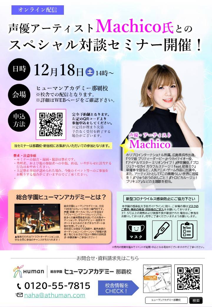 声優・アーティスト #Machico さんのトークショーを #沖縄 で開催! 『 #ウマ娘 プリティーダービー』 #トウカイテイオー 役、他数々の人気作品で活躍中の #声優、Machicoさんによるスペシャルトークショーを開催! 日時:6月17日(土)13時~ 詳細はコチラ→https://onl.la/Nxuhjrb