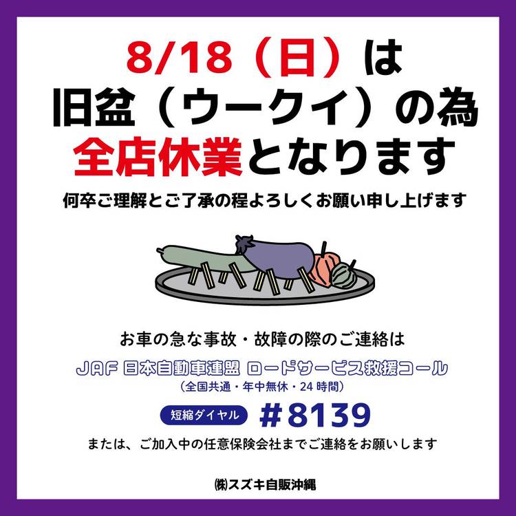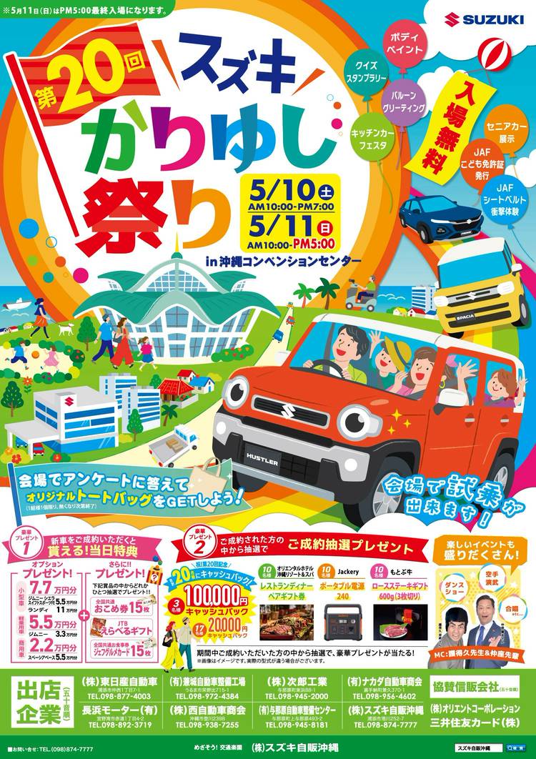 ☆イベント情報☆ 新型eVITARA(eビターラ)の 特別展示会が開催されています! 日程:10/4(土)・5(日) 時間:10:00~18:00 場所:沖縄イオンモール沖縄ライカム 1階ネイチャーコート スズキのEV×SUV 今までにないスタイルでワクワクする一台となっています 会場では、免許不要で歩道を走れる「スズキセニアカー」も展示していますので、こちらも併せてご覧下さい! ...