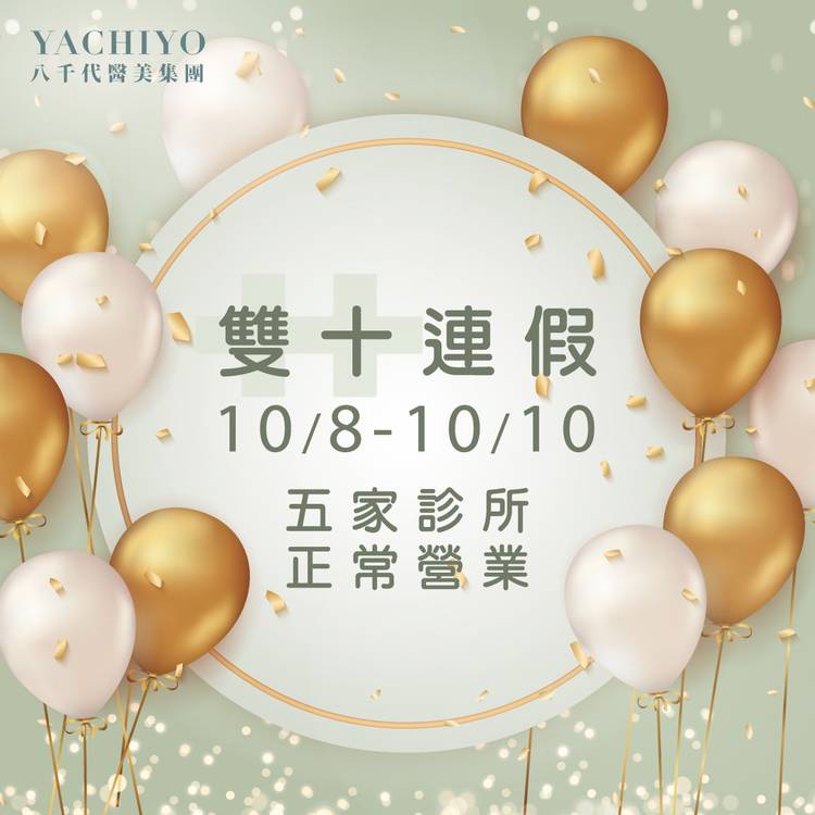 【雙十國慶連假 八千代醫美集團正常營業】 10/8 ~10/10雙十國慶連假🇹🇼 八千代醫美集團服務不打烊 五家診所皆正常營業✨ 讓平常忙碌的自己 趁這個連假好好的放鬆一下💗