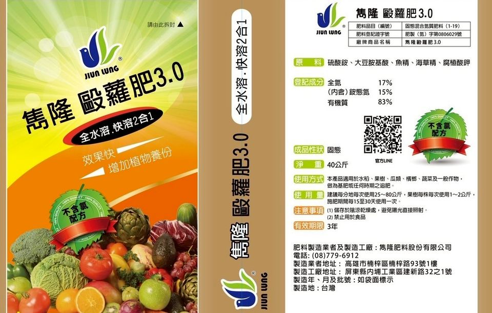 雋隆肥料(股)公司創立 數十年肥料批發買賣的豐富經驗,造就雋隆肥料品牌成立的基礎,公司成立的目的為了滿足廣大農友期待,並對於肥料產品效益的不滿足,期待持續開發優質肥料產品、回饋廣大農友,為台灣農業盡一份心力!