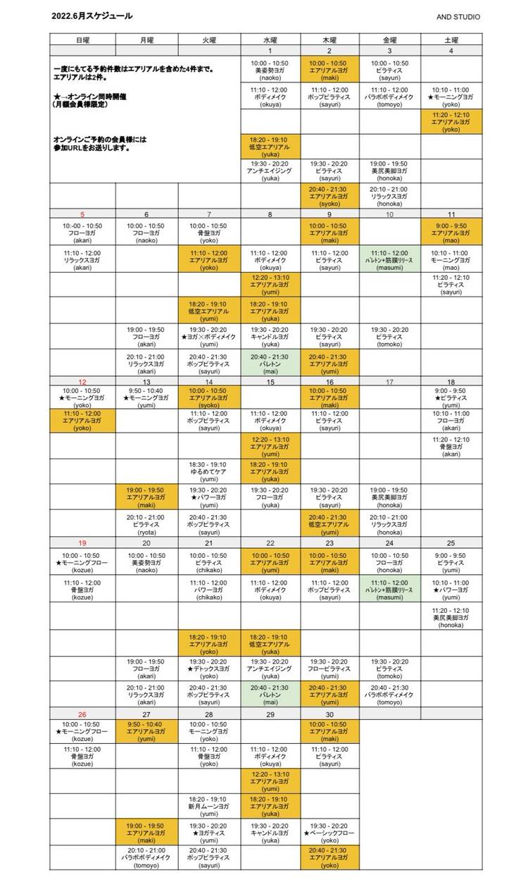 2021年1月スケジュール