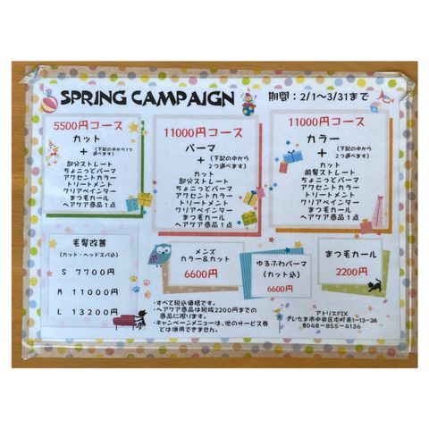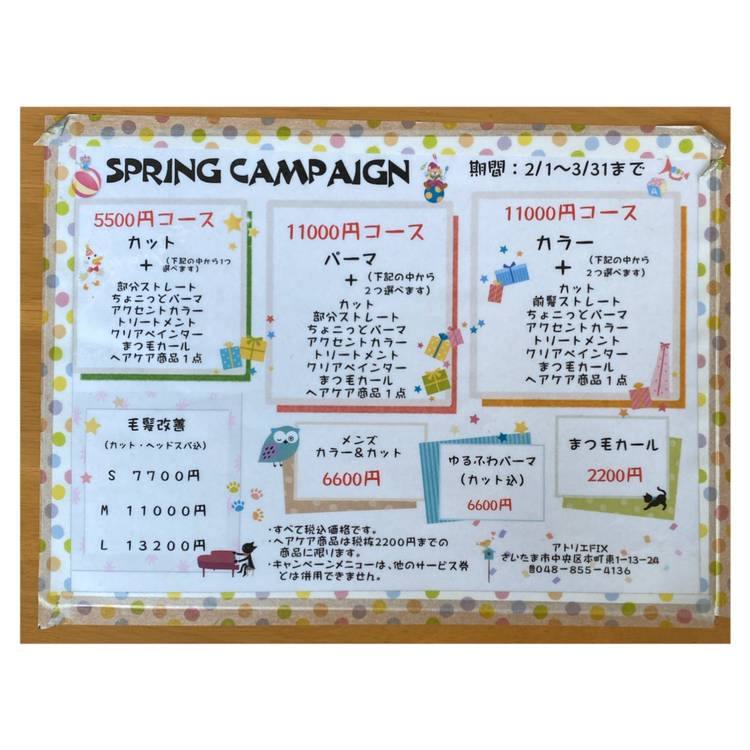 こんにちは、アトリエfixです!! 主にとってもお得なキャンペーンの情報など様々な情報を配信させていきますのでよろしくお願いします!! 与野本町駅から歩いて1分 駐車場は4台 店と隣接してあります。 予約優先となっておりますのでお電話 お待ちしております。