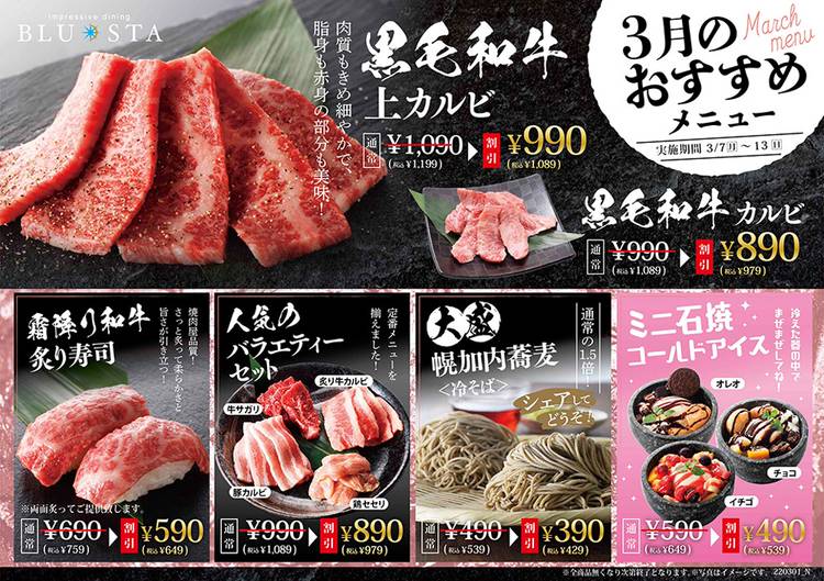 🌼春のおすすめメニュー🌼 少しずつ寒さも和らぎ春を感じますね!🌱 卒業される方や新しいことにチャレンジする方も、 沢山いらっしゃると思います。 そんな時も、美味しい焼肉でスタミナ付けて、 3月も頑張りましょう!💪✨ \\ 期間:3/18~27 // ━━━━━━━━━━━━━ ◎国産牛カイノミ・ササミ 盛り合わせ 1,580円▶▶1,280円(税込1,408円) ━━━━...