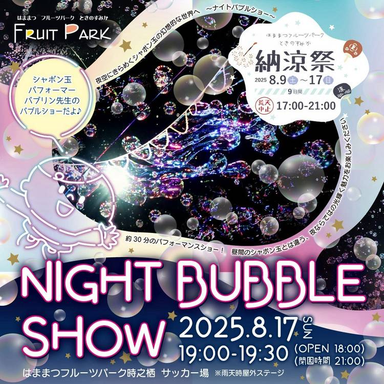 ランタンイベント フルーツパークのサッカー場にて、ランタンイベントを開催します。 幻想的な夜空をみんなで作り上げてみませんか? 開催日 2025年8月16日(土) 19:00-20:30 1基 5,000円~ 早割り有り お申込みは以下ページから https://hamamatsu-fp.co.jp/eventinfo/detail/146