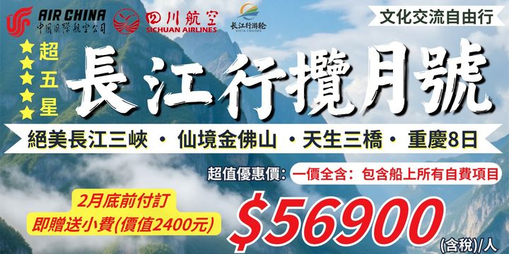 ✨【絕美長江行・攬月號】重慶金佛山・天生三橋 8 日夢幻之旅✨
