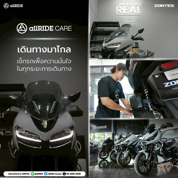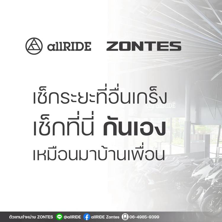 มาเช็กระยะที่ allRIDE Zontes บรรยากาศชิลๆ เหมือนแวะมานั่งเล่นบ้านเพื่อน . allRIDE Zontes เราไม่ได้แค่เช็กระยะ แต่เรามอบประสบการณ์การดูแลแบบมืออาชีพ ปรึกษาได้ทุกเรื่องเกี่ยวกับรถ มั่นใจได้ทั้งคุณภาพงาน...
