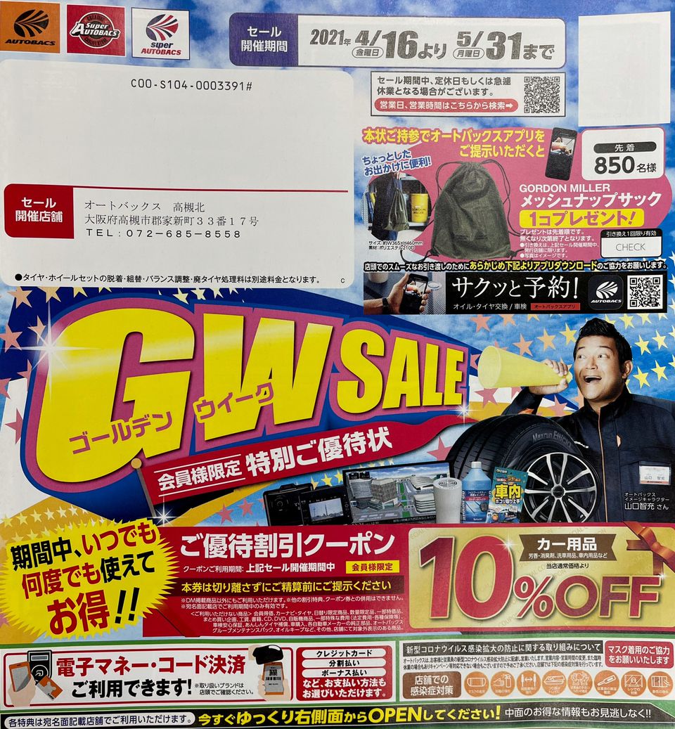 「クルマのことならオートバックス」 クルマで困ったら、ご相談ください!! カー用品だけじゃないんです♪クルマの車検やメンテナンスも、オートバックスならクルマのトータルサービスが可能! タイヤ、オイル、バッテリーをはじめ豊富なカー用品を一堂に集めた売り場、パーツ取り付けやお車のメンテナンスを行えるピット。 オレンジ色の看板でお馴染みのオートバックスに、是非、お立ち寄りください!お待ちしております~(^▽^)
