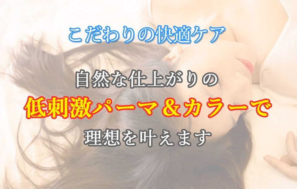 パーマ・カラーの後に残留薬剤除去を全員に無料サービスさせていただきます。これにより髪のパサつき、かゆみが軽減されます。