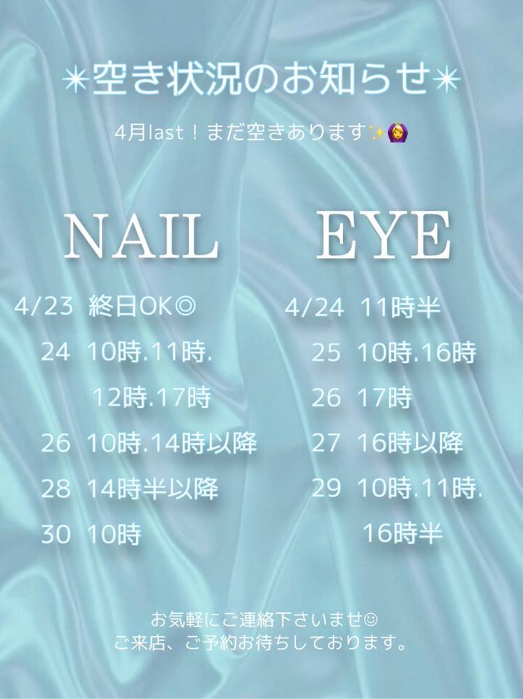 MASHU nail&eyelashです! アイリスト3人、ネイリスト1人の 4人のスタッフでお待ちしております。 まつげエクステ、 ネイルとの同時施術も可能です。 お気軽にご相談下さい! エステ、美容院との系列店 ならではのサロン専売品も 取り扱っております。 気になるお悩みがありましたら お気軽にご相談下さい! 忙しい女性に寄り添っていける アットホームなサロン作りに 取り組んでおります?? よろしくお願いいたします!